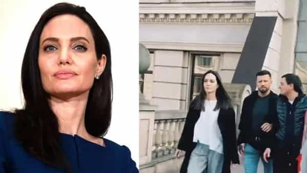 Angelina Jolie in Lviv: A video of Angelina Jolie in Lviv shows her, and a group of people running to a bomb shelter has gone viral.