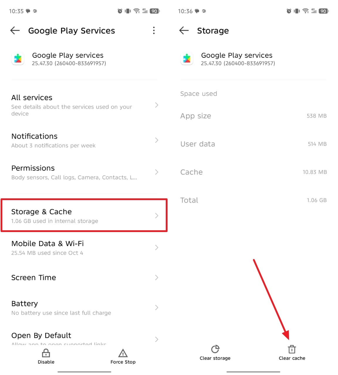 Way 5. Clear Update and Play Services Cache