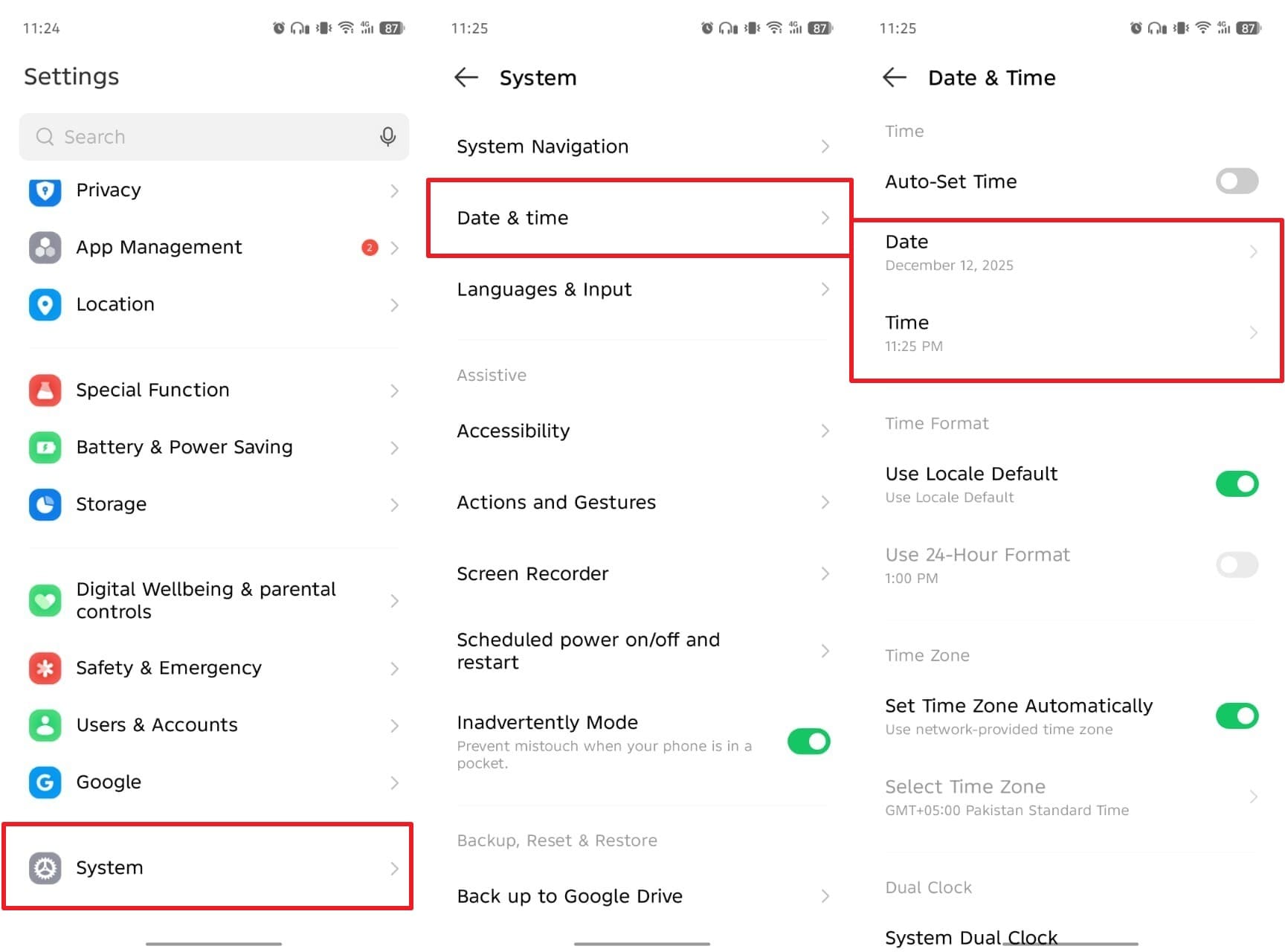 Instructions. Navigate to the “System” settings and access the “Date & Time” section. Afterward, tap “Date” and “Times” to set them manually.