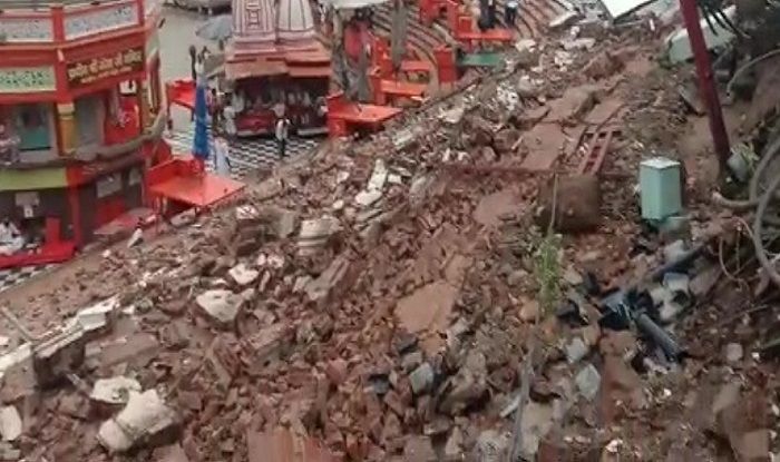 New Delhi: A lightning strike, caused by heavy rains, struck near the Brahmakund in Har Ki Pauri, Haridwar, as a wall collapsed and a transformer installation burned down.
