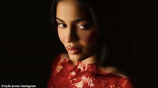 Kylie Jenner unveils creepy blood-themed makeup to celebrate Halloween.