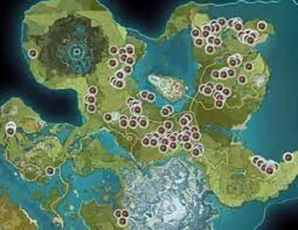 Here’s a map showing where Pinecones may be found in Genshin Impact: