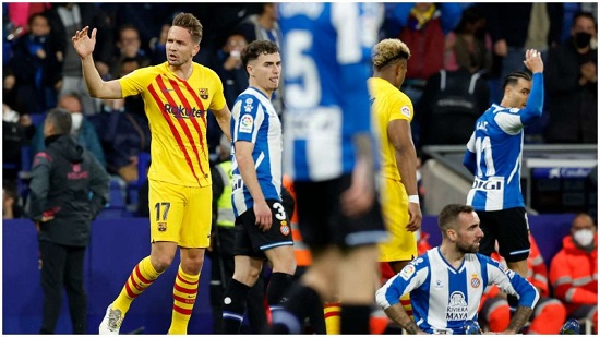 Luuk de Jong struck an eerie late goal to draw as Barcelona defeated Espanyol in a thrilling La Liga derby.
