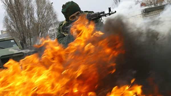 Outside Mariupol, near the frontline occupied by separatists backed by Russia, smoke came out of a fire in a forest hit through Russian bombing.