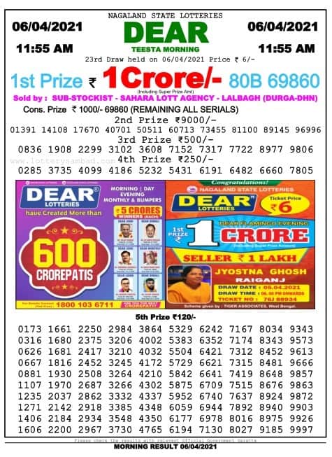 Lottery Sambad Today Result Morning 11.55 AM