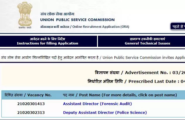 2021 Union Public Service Commission Recruitment: The Union Public Utilities Commission (UPSC) invites to submit an online application for the eligible candidate for the position of Deputy Director of Forensic Audit and Deputy Director of Police Science.